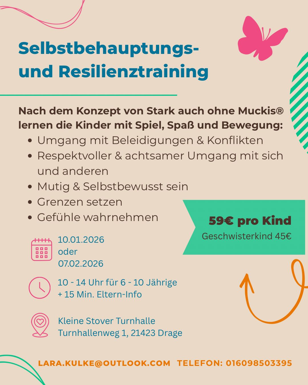 Mit Spiel, Spaß und Bewegung zu mehr Selbstbewusstsein und innerer Stärke, am 10. Januar oder 7. Februar,10 - 14 Uhr für Kinder von 6-10 Jahren.